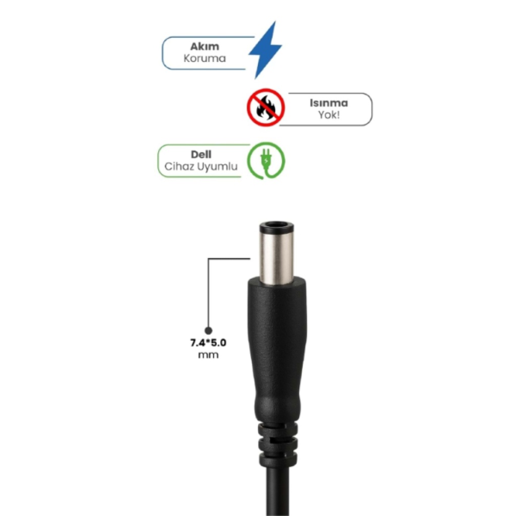 19.5V 4.62A 7.4 * 5.0MM 90W DELL İÇİN LAPTOP ADAPTÖRÜrün Özellikleri19.5V 4.62A 7.4 * 5.0 mm 90W Dell İçin Laptop Adaptör, yüksek verimlilik ve güvenli kullanım sunmak için geliştirilmiş güçlü bir şarj cihazıdır. Dell cihazlarla birebir uyumlu yapısı sayesinde stabil enerji aktarımı sağlar ve bilgisayarınızın performansını destekler. Gelişmiş akım koruma teknolojisi, ani voltaj dalgalanmalarına karşı cihazınızı güvenle korurken dayanıklı adaptör yapısı uzun süreli kullanımda bile ısınmayı minimum seviyeye indirir.90 Watt gücü sayesinde hızlı ve verimli şarj imkânı sunan adaptör, günlük çalışma temposunda kesintisiz güç sağlar. AC 110-240V geniş giriş voltaj aralığı ile dünya genelinde uyumludur. 1.5 metre power kablosu, kullanım sırasında hareket özgürlüğü sunarak pratik bir deneyim oluşturur. 2 yıl garantili olması da güvenli ve uzun ömürlü kullanım avantajı sağlar.Paket İçeriği1 adet 19.5V 4.62A 7.4 * 5.0 mm 90W Dell Laptop Adaptör