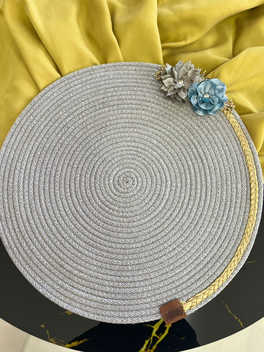 DecoHandy 39cm Çiçekli Jüt Örme Supla Amerikan Servis