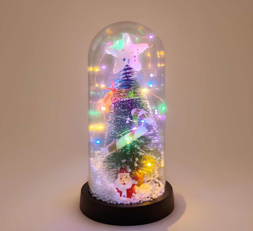 Yılbaşı Temalı Işıklı Dekoratif Cam Fanus - Model 1