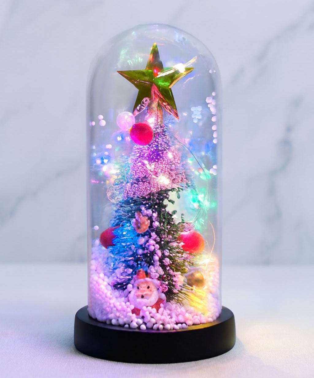 Yılbaşı Temalı Işıklı Dekoratif Cam Fanus - Model 4